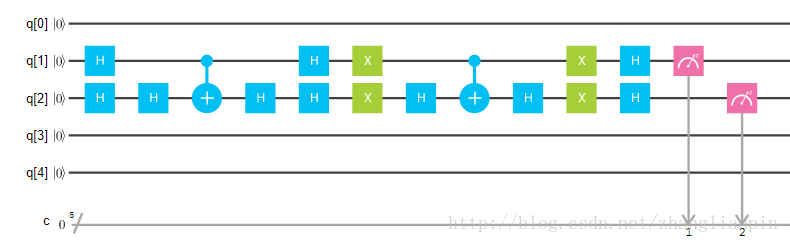 描述量子计算机的模型,一般主流有3种:quantum circuit model , one way quantum computation model , adiabatic quantum computation model。IBM描述量子计算机的模型使用的是quantum circuit model(量子线路模型)。啥意思,就是在基态上添加各种门操作,然后通过测量得到结果。看图说话: